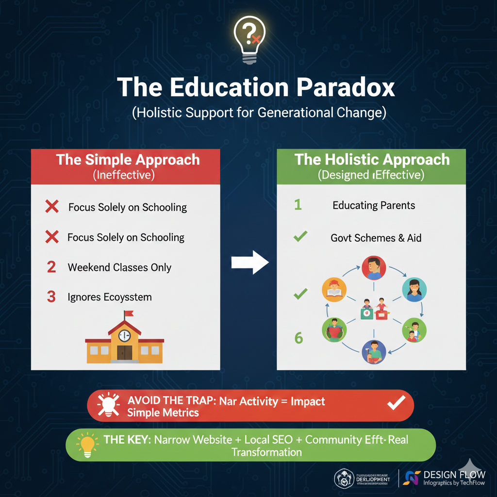 Walk through any slum or village in India where NGOs operate, and you’ll encounter a strange phenomenon: children who’ve met dozens of volunteers but whose lives haven’t fundamentally improved.